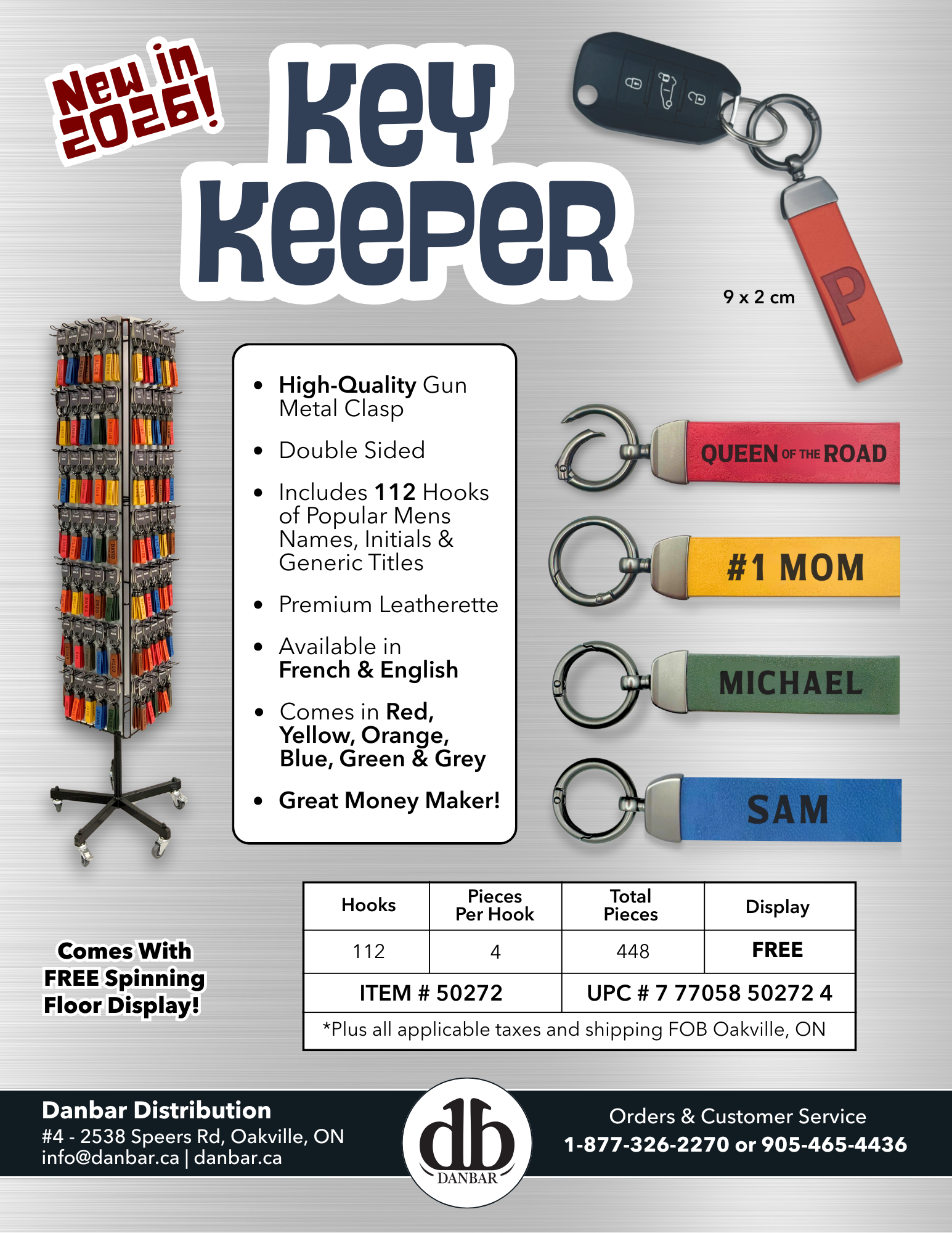 The Key Keeper Keychain is a premium leatherette accessory designed for durability and everyday use. It includes 112 interchangeable hooks featuring popular men’s names, initials, and generic titles. A high-quality claw clasp allows for easy attachment to bags, belts, or other items.