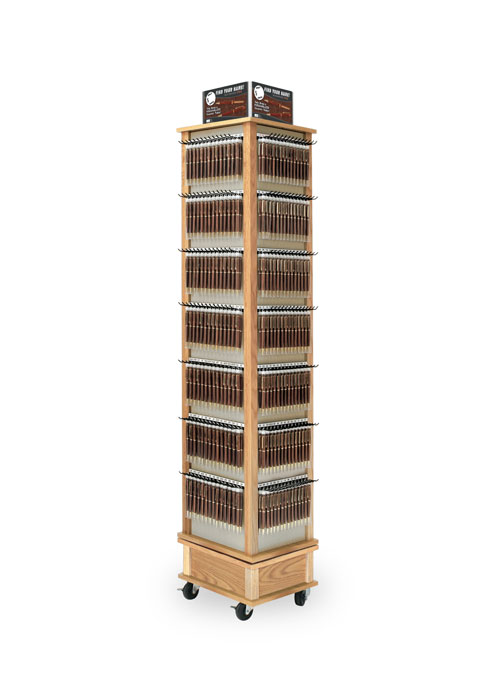 - 4 -sided large rotating oak floor display (16″ x 16″ x 72″)